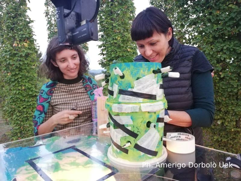 "The Bloom Machine" è uno strumento analogico per realizzare animazioni dal vivo. Ideato e costruito da Anna Givani, lo strumento si compone di due piani trasparenti rotanti ed uno fisso. Alla base una lampada permette il cambio di colore degli sfondi. Le immagini che scorrono sui diversi livelli, vengono riprese da una telecamera presente nel dispositivo ed infine proiettate per lo spettatore.